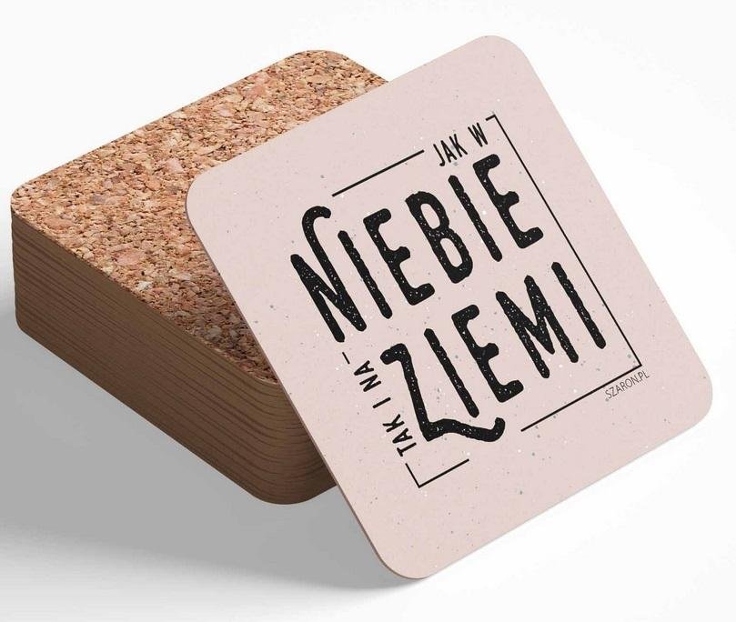 Podstawka korkowa pod kubek o wymiarach 10cm x 10cm.Podstawka zawiera tekst: Jak w niebie taki i na ziemi prečítať celé