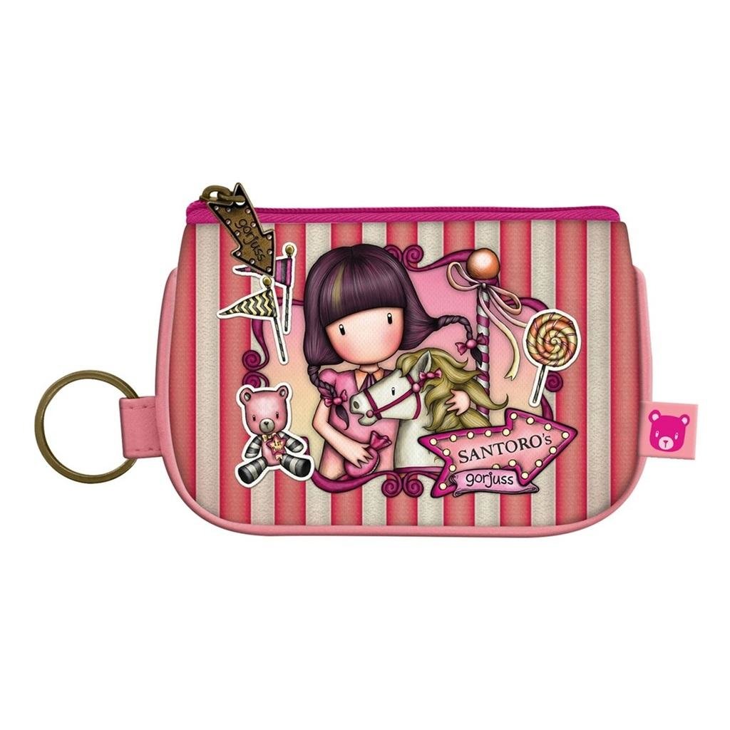 Portmonetka na Suwak, Brelok - Gorjuss - CarouselFantastyczna seria Carousel ozdobiona jest dziewczynką Gorjuss z uroczym konikiem utrzymana w słodkich różowych kolorach. Na odwrocie fajerwerki, kolorowe girlandy, cukrowa wata - wszystko co znajdziemy w wesołym lunaparku.Mała portmonetka,...
