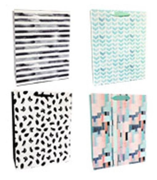 Miks wzorów, towar wysyłany losowo. Cena za sztukę.Wzory: pasy, pastelowe piksele.Torba prezentowa świąteczna, wymiary: 26 x 32 cm, matowa. prečítať celé