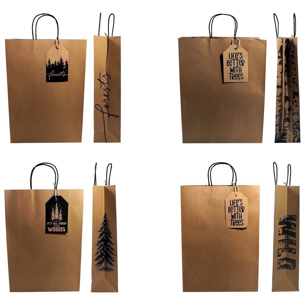 Torebka L FOREST z papieru kraft z elegancką przywieszką, rączki ze skręconego czarnego papieru, mix wzorów wysyłany losowo. prečítať celé