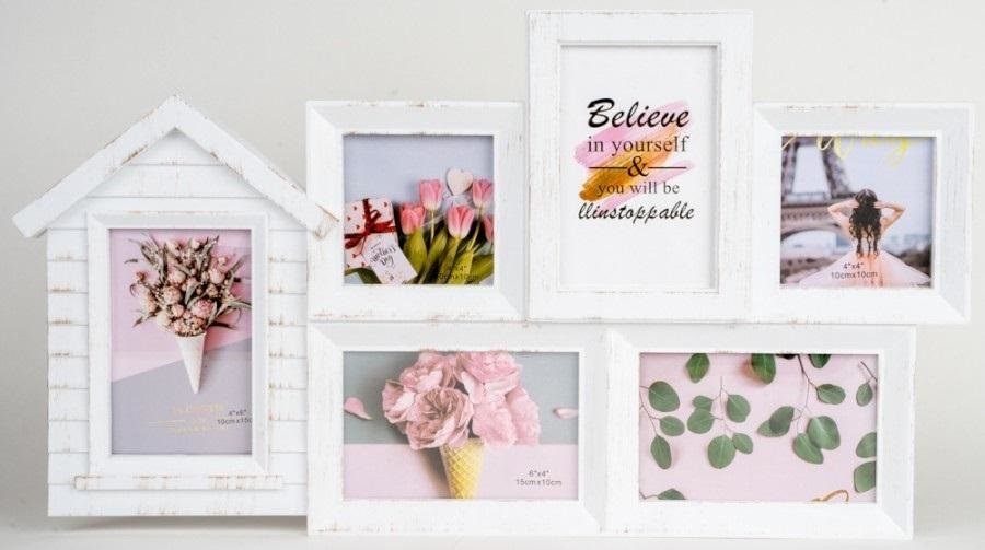 Plastikowa ramka na 4 foto 10 x 15 cm i 2 foto 10 x 10 cm, rozmiar ramki 56 x 31 cm, do zawieszenia prečítať celé