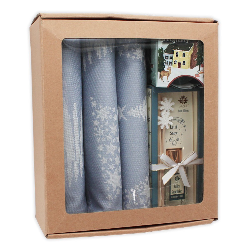 HOME ELEMENTS Stříbrný set vánočních utěrek z egyptské bavlny se svíčkou a difuzérem