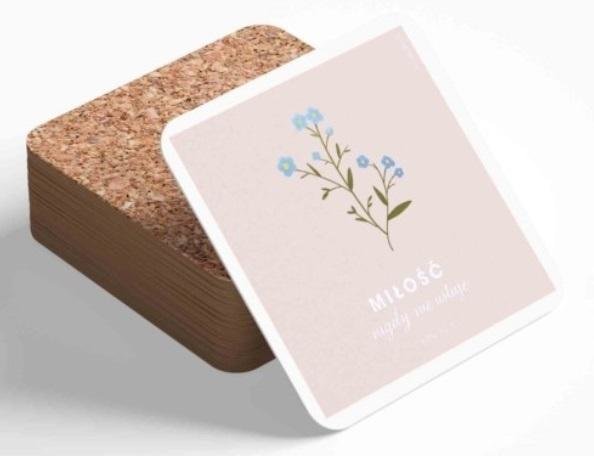 Podstawka korkowa pod kubek o wymiarach 10cm x 10cm.Podstawka zawiera tekst:On cię otacza.Ps 139,5 prečítať celé
