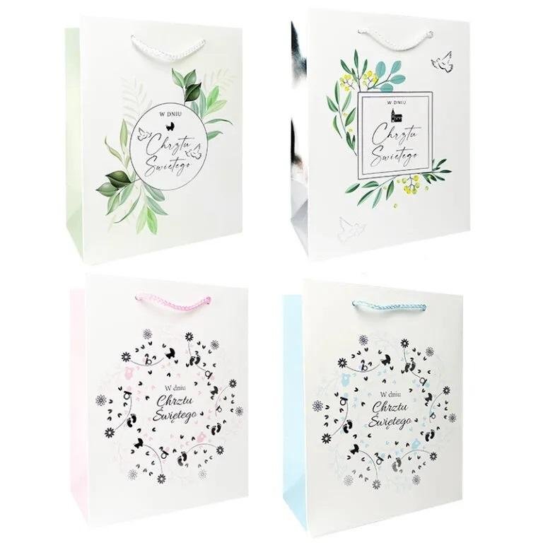 Torby prezentowe bogato ozdobione srebrną lub złotą foliąGruby papier o dużej sztywności gramatura 210 g/m2Wzór wysyłany losowo. prečítať celé