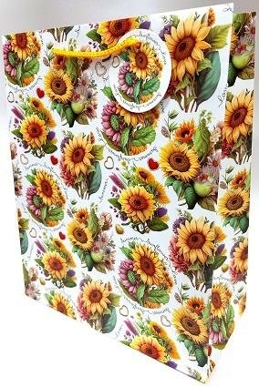 Torebka ozdobna matowa 26x32x12cm słoneczniki