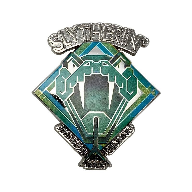 Velký barevný odznak s erbem Zmijozelu na bradavické škole čar a kouzel bude pýchou každého příslušníka této koleje ve světě Harry Pottera! Na odznaku se kromě hadího symbolu nachází také zmijozelské motto: Ambition, Cunning, Pride (Ctižádost, rafinovanost, hrdost). Jedná se o limitovanou edici 9 995 ks, každý odznak je na zadní straně individuálně očíslován.