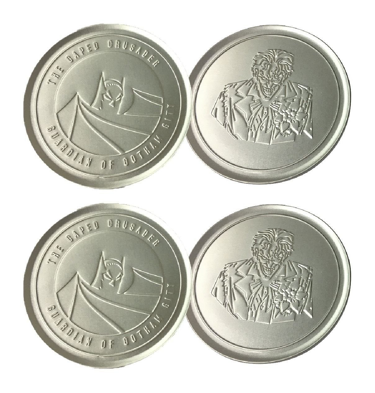Sada obsahuje 4 ks krásných kovových podtácků, dva s Batmanem a 2 s jeho věčným rivalem Jokerem. Skvělé pro setkání fanoušků všech superhrdinů a superpadouchů od DC Comics! Podtácky mají korkový spodek, aby neklouzaly. prečítať celé