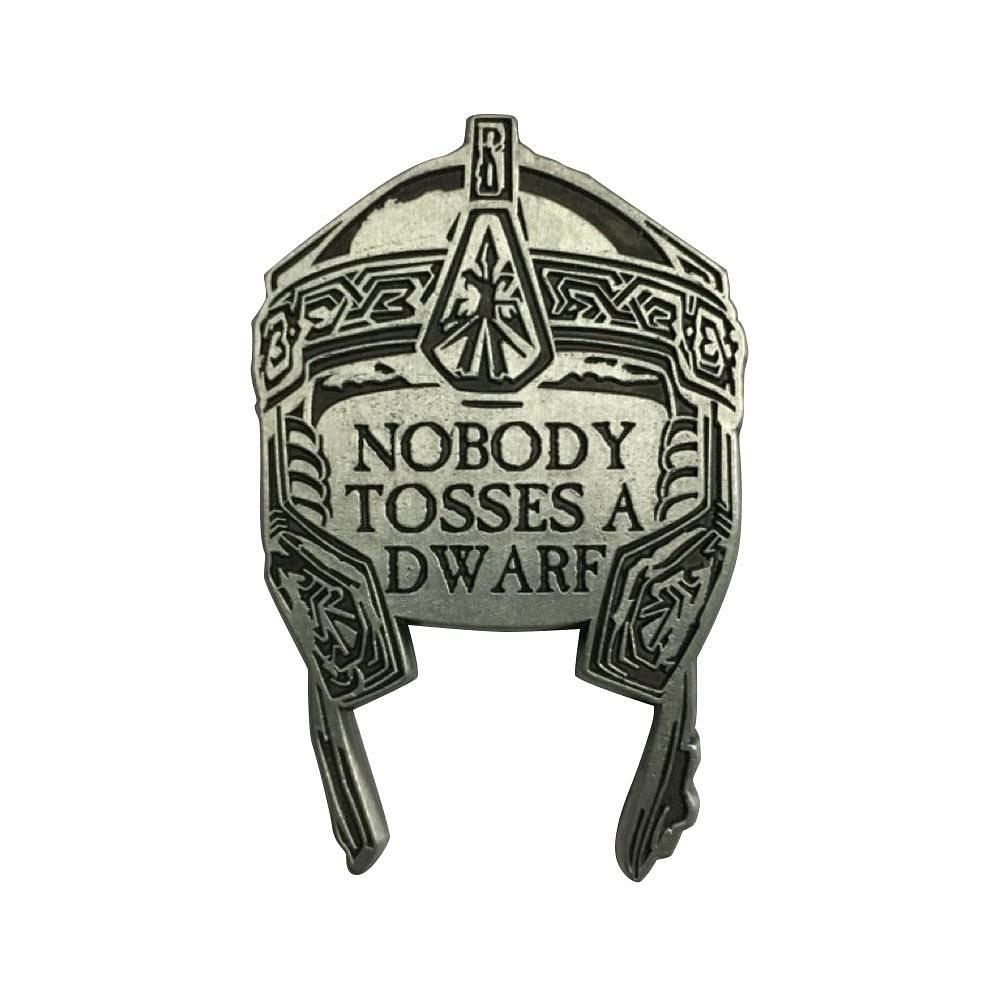 Kovový odznak v podobě helmy trpaslíka Gimliho z filmové fantasy trilogie Pán prstenů (Lord of the Rings) potěší fanoušky i sběratele. Uvnitř helmy se nachází nápis Nobody Tosses a Dwarf - Nikdo nebude házet trpaslíkem . Odznak je součástí celosvětově limitované série čítající 9 995 ks, každý kus je na zadní straně individuálně očíslován.
