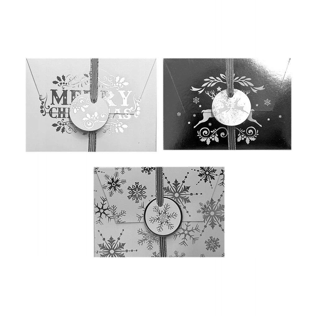 Pudełka na karty podarunkowe gotówkę 3 sztuki pudełeczka sztywne, wykonane z kartonu elegancki wzór świąteczny zdobienie wykończone hot-stampingiem folią metaliczną w kolorze srebrnym świetny sposób na ofiarowanie gotówki, karty podarunkowej lub wszelkiego rodzaju voucherów 3...