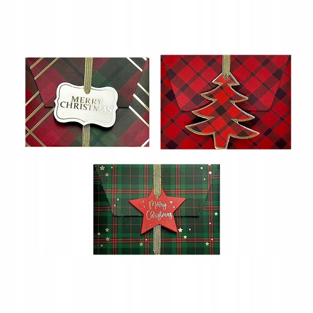 Pudełka na karty podarunkowe gotówkę 3 sztuki pudełeczka sztywne, wykonane z kartonu elegancki wzór świąteczny zdobienie wykończone hot-stampingiem folią metaliczną w kolorze złotym świetny sposób na ofiarowanie gotówki, karty podarunkowej lub wszelkiego rodzaju voucherów 3 sztuki...