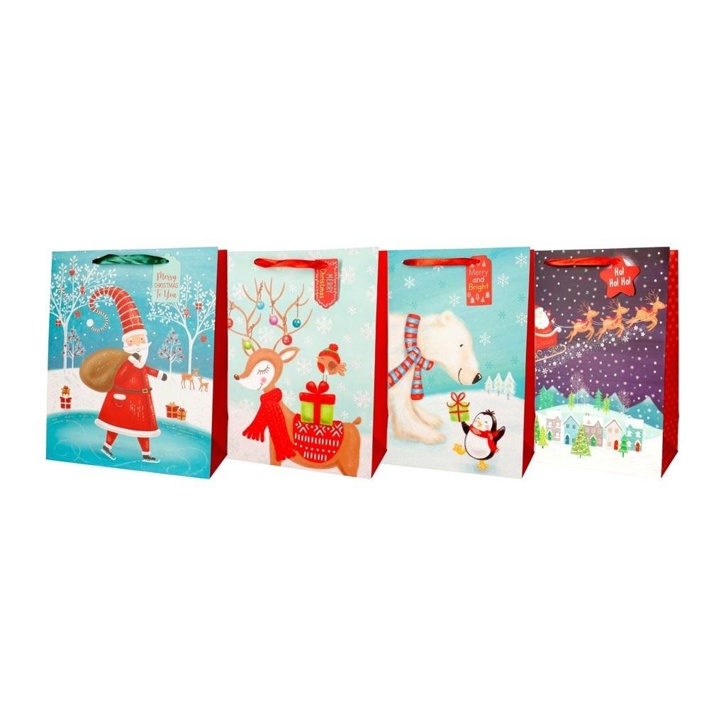 Torba prezentowa 4 sztukizestaw eleganckich toreb prezentowychwykonane z wysokiej jakość papieru o gramaturze 210gsm w satynowym matowym wykończeniuefektowne zdobienie brokatemsatynowa rączkapiękny graficzny nadrukbardzo eleganckiezestaw 4 sztuk ( po 1 szt. z każdego wzoru )wymiar 31x42x12cm