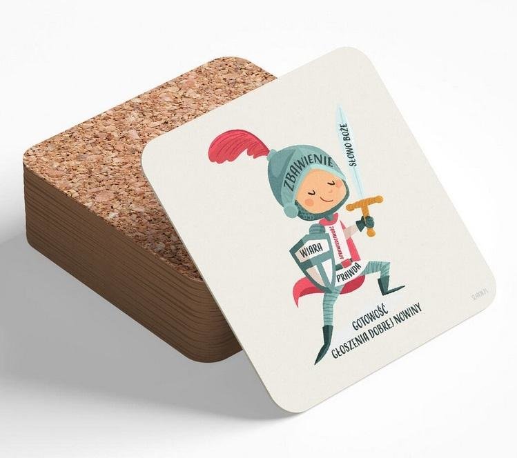 Podstawka korkowa pod kubek o wymiarach 10cm x 10cm.Podstawka zawiera podpisane elementy zbroi Bożej. prečítať celé