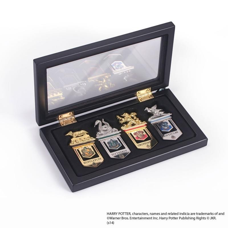Set 4 záložek s erby a maskoty bradavických kolejí ve sběratelské krabičce. Rozměry: 16 x 9 cm prečítať celé
