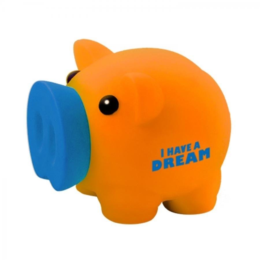 Skarbonka Świnka mini z tworzywa sztucznego z napisem I have a dream pomarańczowa