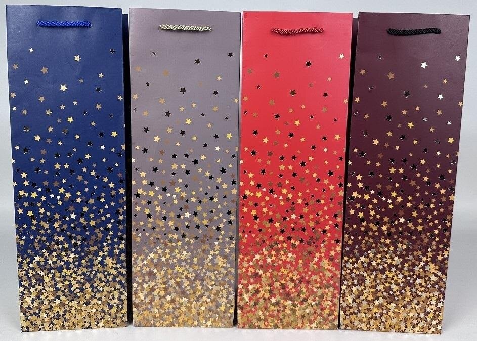 Torebka prezentowa na butelkę Premium. Materiał karton 210 gr. Złocone elementy ozdobne. Uchwyt ze sznurka.Mix 4 wzorów. Towar wydawany losowo. prečítať celé