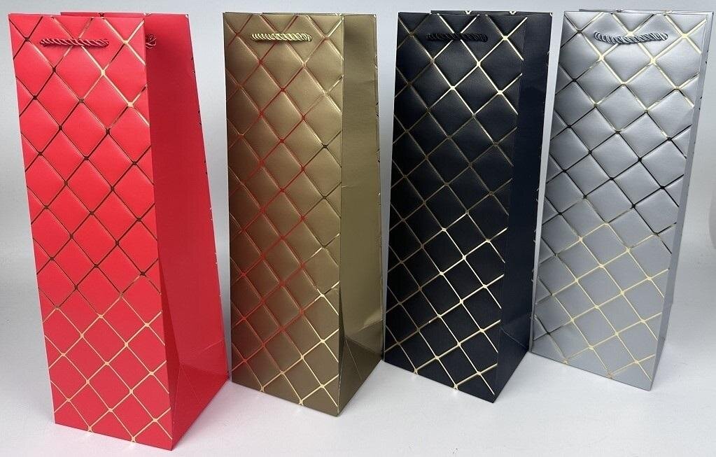Torebka prezentowa na butelkę Premium. Materiał karton 210 gr. Złocone elementy ozdobne. Uchwyt ze sznurka.Mix 4 wzorów. Towar wydawany losowo. prečítať celé