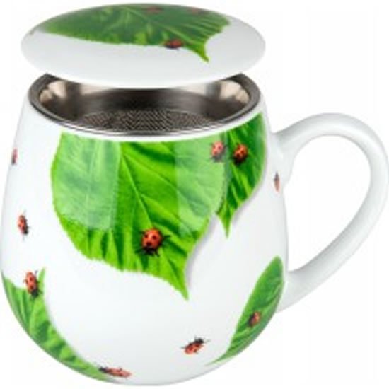 Hrnek buclák s víčkem a sítkem - Berušky na listech / Little Hearts