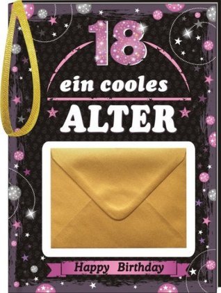 Cooles Alter 18 Schwarz/ Pink/ Lila - Tolles Accessoire zum Anhängen an ein Partygeschenk mit einem Briefumschlag im gestanzten Cover für ein Geldgeschenk und einer Eintrag-Seite für einen ganz persönlichen Wunsch