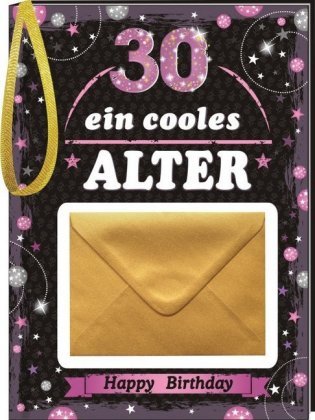 Cooles Alter 30 Schwarz/ Pink/ Lila Tolles Accessoire zum Anhängen an ein Partygeschenk mit einem Briefumschlag im gestanzten Cover für ein Geldgeschenk und einer Eintrag-Seite für einen ganz persönlichen Wunsch