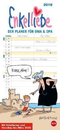 Mit seinen treffenden Cartoons und bissigen Kommentaren bringt es Peter Butschkow humorvoll auf den Punkt: Hier prallen zwei Welten aufeinander und es werden zwei verschiedene Sprachen gesprochen. Ein Planer für engagierte Großeltern, die aktiv am Leben ihrer Enkelkinder teilhaben. Mit übersichtlichem Kalendarium, Platz für Eintragungen und mit Schulferien und Vorschau bis März 2020.