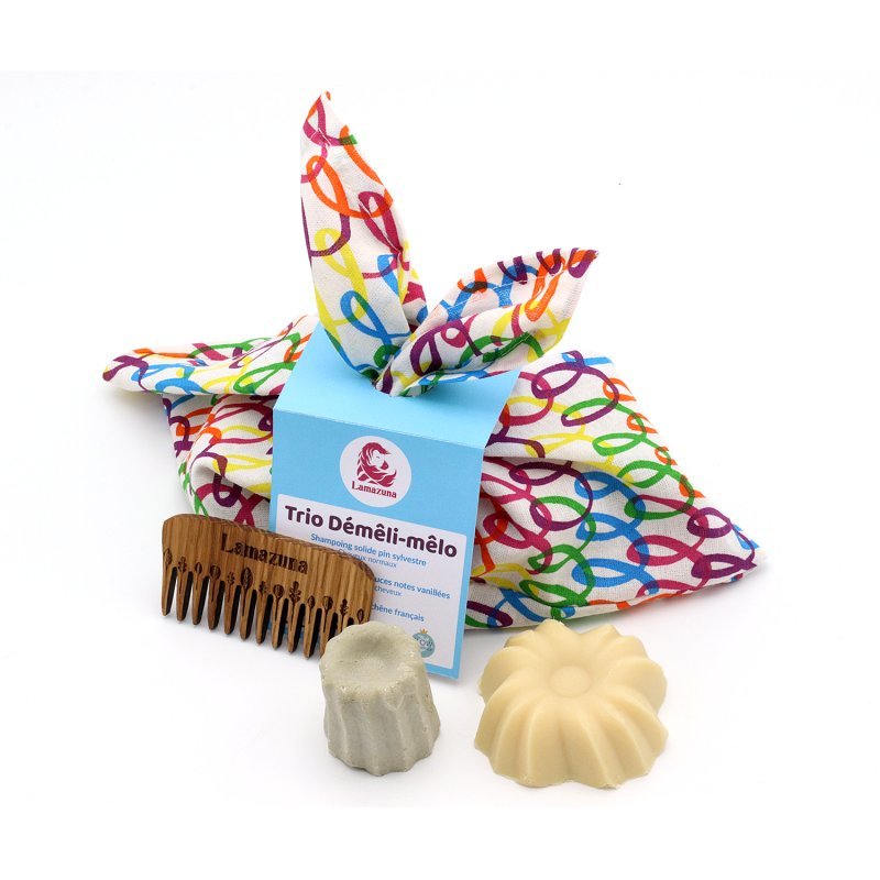 Lamazuna Dárková sada na vlasy trio - borovice - v upcyklovaném pytlíku