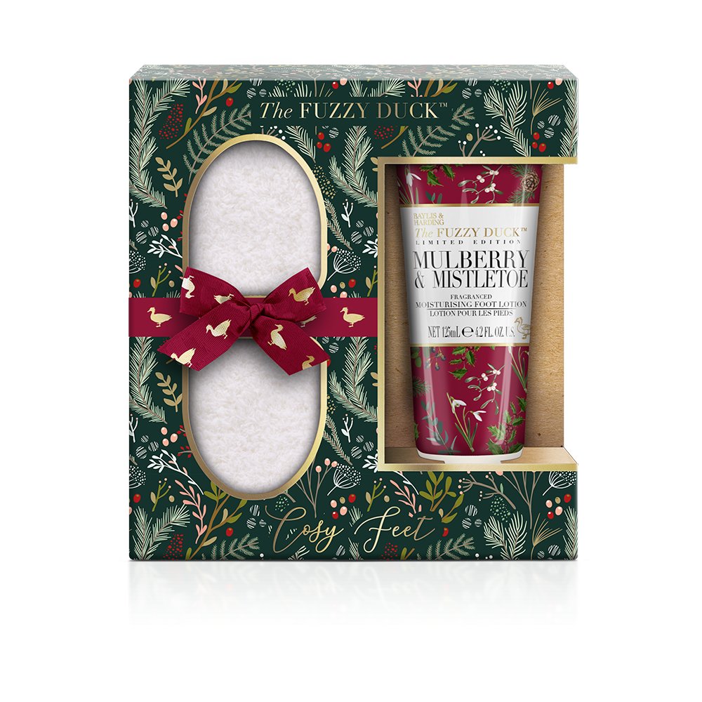 The Fuzzy duck dárkový set ponožky a krém Mullberry, Mistletoe, Frosted Cremberry