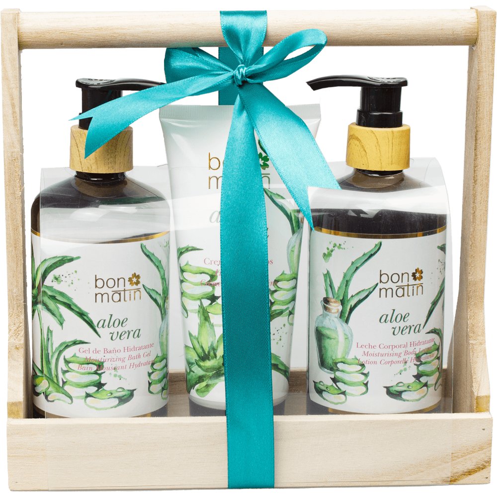Dárková sada značky Bon Matin aloe vera v dekorativním dřevěném závěsu obsahuje 300 ml hydratační sprchový gel, 300 ml hydratační tělové mléko, 150 ml pleťový krém. prečítať celé