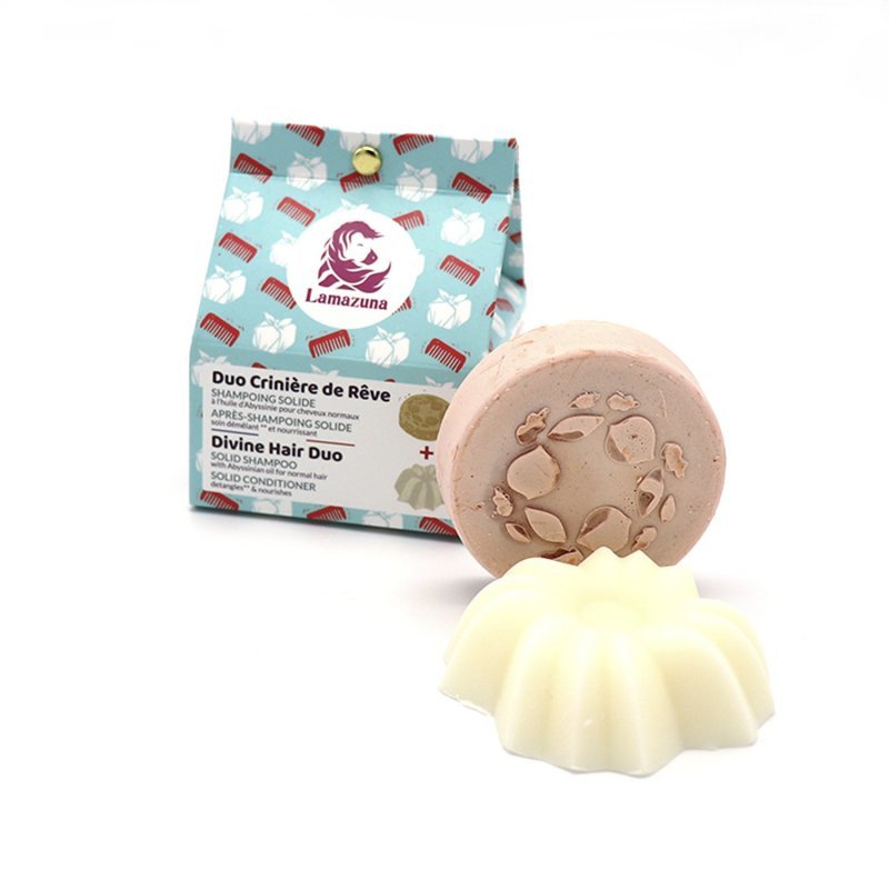 Ze stylové dárkové krabičky vylovíte hned dva voňavé poklady. Vůní pralinek okouzlí tuhý šampon s habešským olejem, který bohatě pění, dopřeje vlasům spoustu lesku a ochrání je před zacucháváním a vysušováním. Tuhý kondicionér s kombinací jemných vůní citrónu a bazalky vlasy hloubkově vyživuje a...