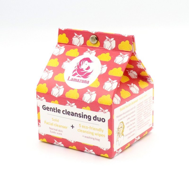 Obsah balení:1x Lamazuna Tuhé mýdlo na čištění obličeje pro normální pleť - exotika (23 g), 1x Lamazuna Odličovací tamponky (5 ks)