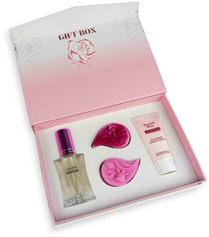 Táto jedinečná sada je starostlivo zostavená tak, aby uspokojila potreby suchej pokožky a zároveň ponúkla luxusnú vôňu, ktorá vás bude sprevádzať celý deň. Luxusný parfém s vôňou bielej ruže pôsobí jemne a elegantne, zatiaľ čo výživné krémové sérum Diamond Rose intenzívne hydratuje a vyživuje pokožku počas dňa i noci. Súčasťou balenia sú aj dvojice glycerínových mydiel, ktoré prinášajú jemné a šetrné umývanie bez vysušovania.