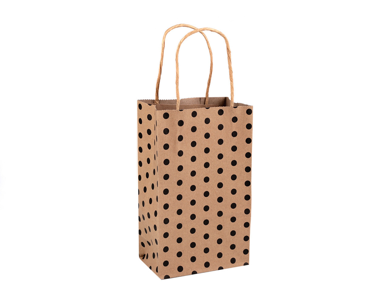 Papírová taška s puntíky 13x21,5 cm - 100 ks - 2 hnědá přírodní černá