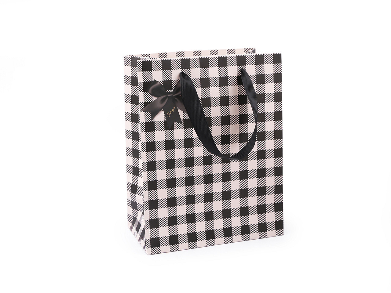 Dárková taška káro s mašlí - 4 ks - 3 černá krémová