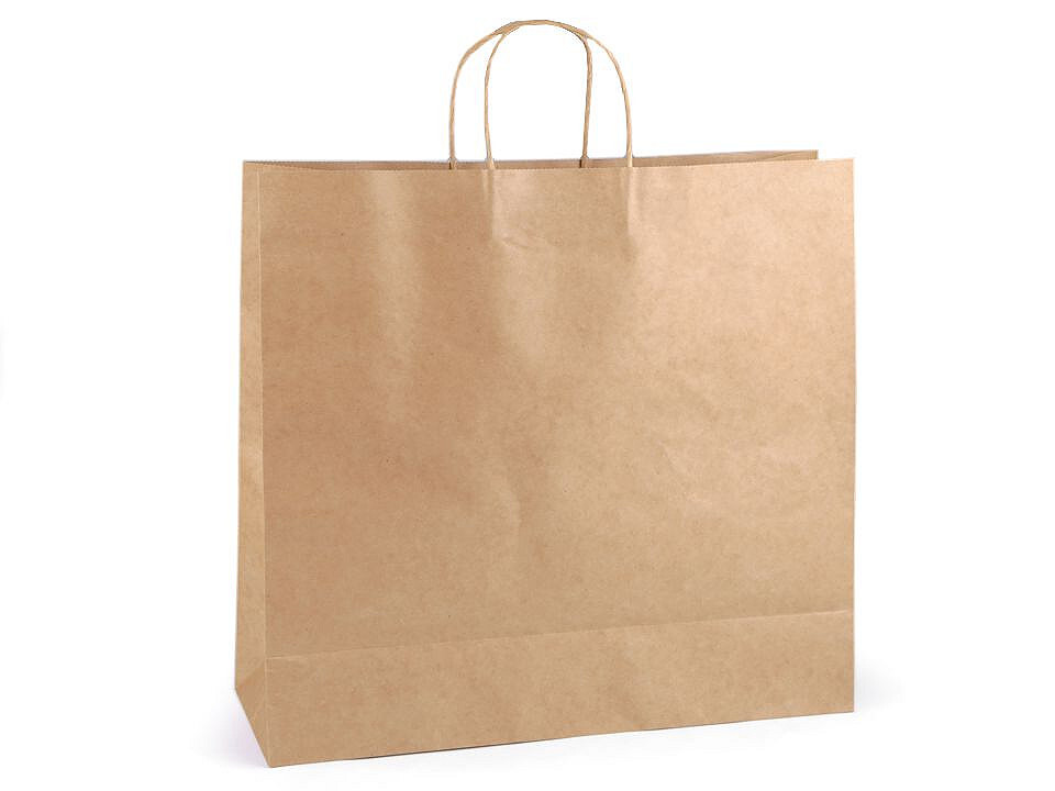 Velká papírová taška v přírodní barvě je kvalitní, vyrobená z pevnějšího papíru. Ucha jsou kroucená, také vyrobená z papíru. Je vhodná nejen k darování dárků, ale i k dozdobení. Můžete ji pomalovat nebo na ni nalepit např. flitry, glitry a různé ozdoby na scrapbooking. Taška je vhodná i k firemním účelům, může se potisknout.