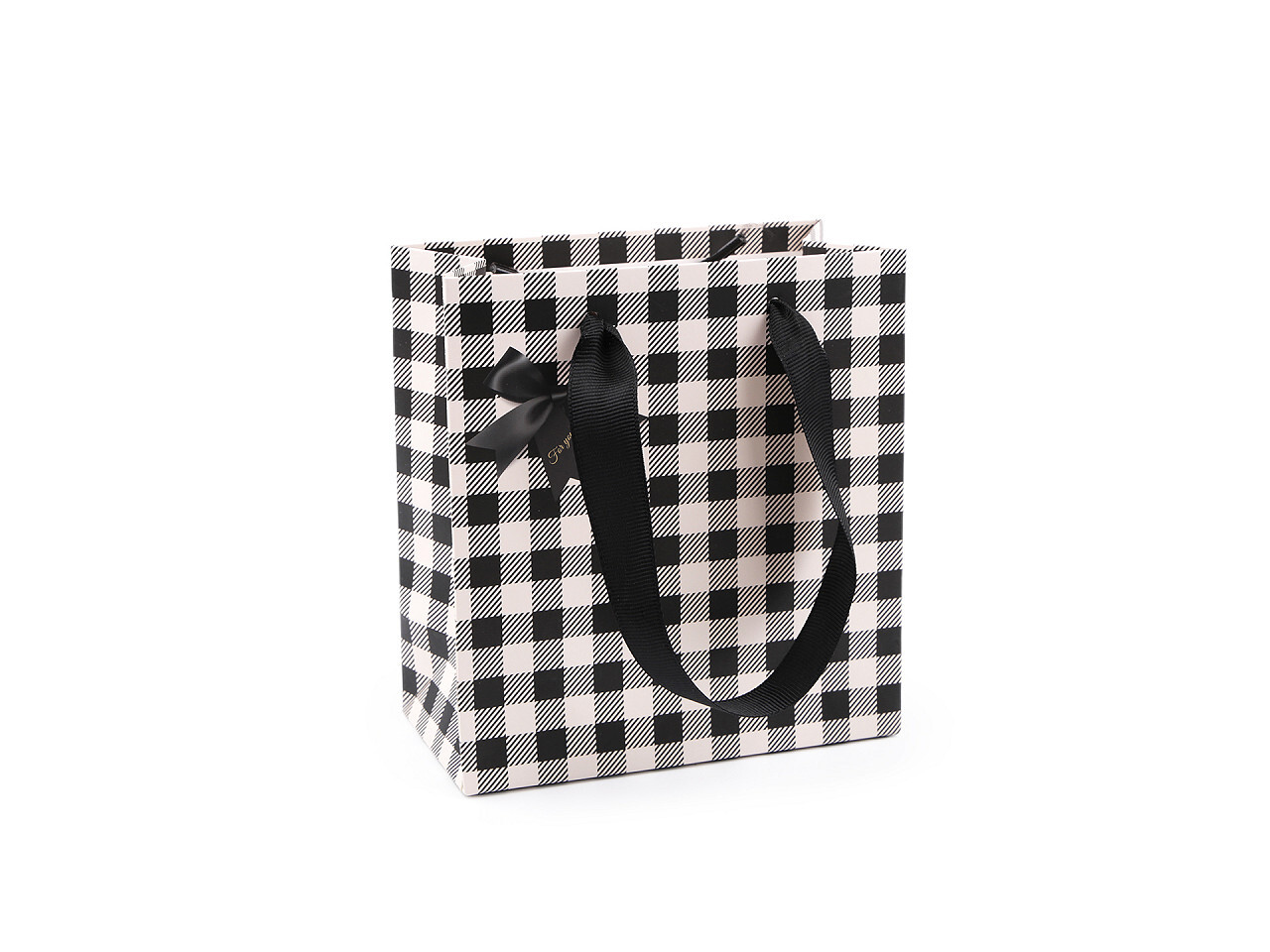Dárková taška káro s mašlí - 4 ks - 3 černá krémová
