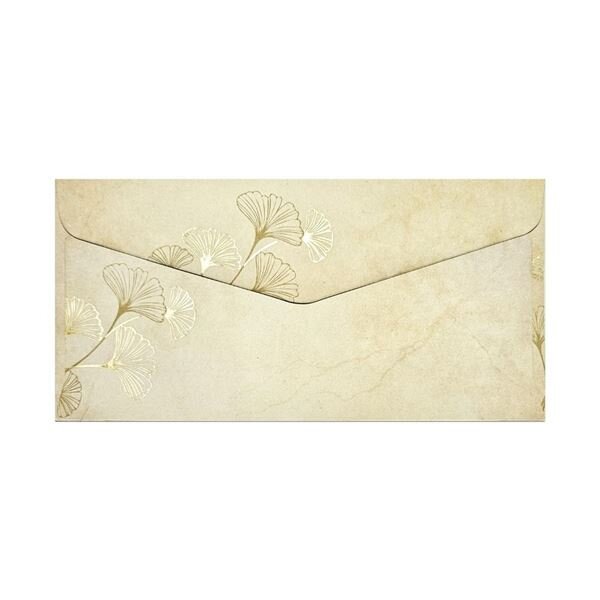 Elegantní ozdobné obálky s tištěnými prvky zdobené lesklou fólií - s motivem listu stromu Gingko biloba;Skvělá volba nejen pro korespondenci a přání, vhodné též na dárkové poukázky a vouchery;Formát obálky: DL (110 x 220 mm);Gramáž papíru: 120 g/m2;Balení obsahuje 10 ks;Lepené za mokra