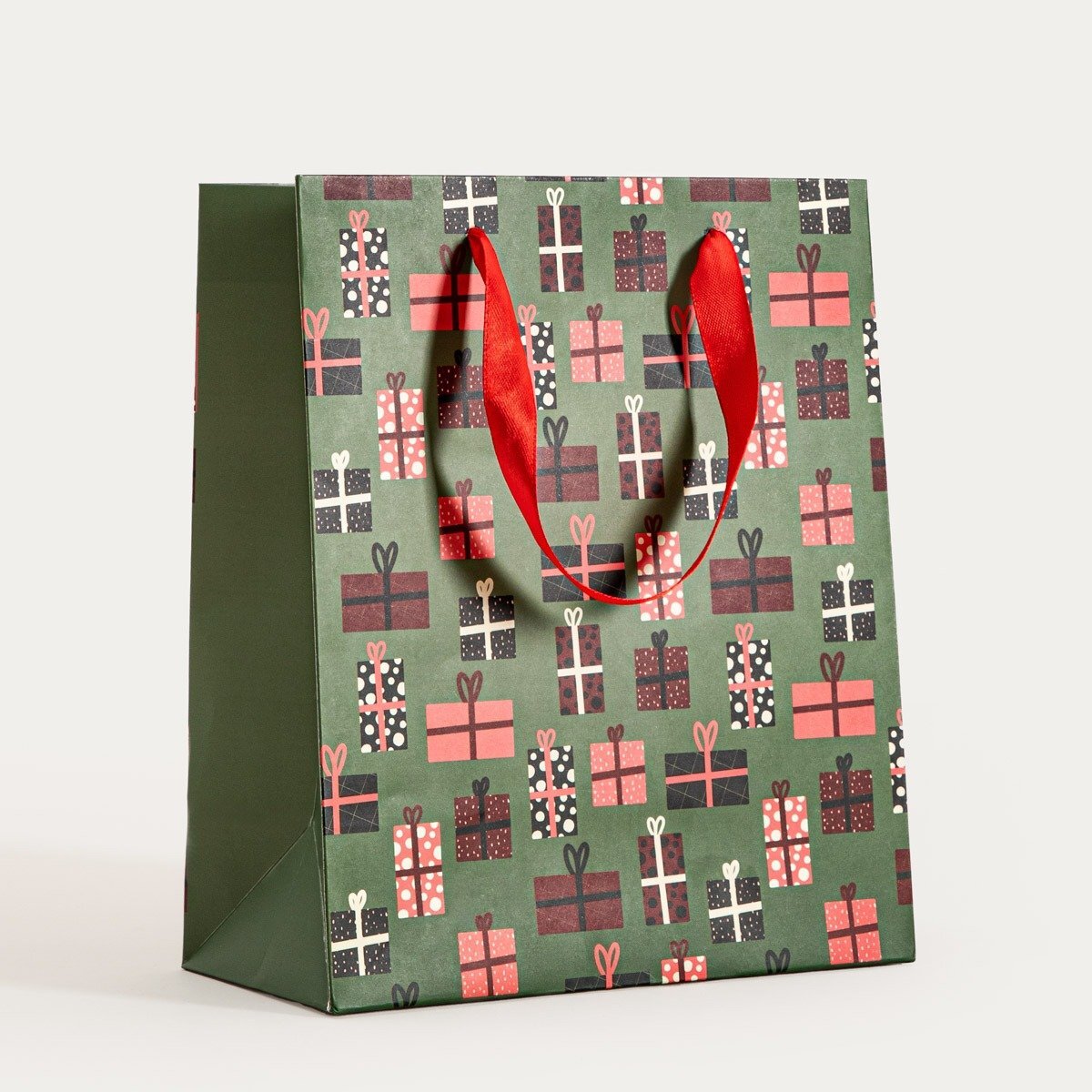 Elegantní design s motivem dárků - Pohodlné a odolné, ideální pro balení dárků - Dárková taška zelená 19 × 23 × 10 cmHledáte estetický a praktický způsob, jak zabalit dárek? Dárková taška CYMKA je ideálním řešením. Zelené pozadí zdobené motivem dárků perfektně ladí s vánoční atmosférou a...