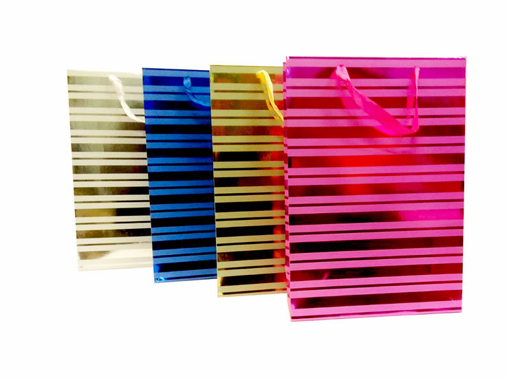 Dárková taška - Pruhy, lesklá s fólií/55x43x14 (mix)