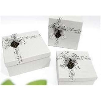 Sada dárkových krabiček.Sada obsahuje tři krabičky o třech velikostech. Malá krabička má rozměry : 15,5 x 15,5 cm, výška 6,5 cm.Střední krabička má rozměry : 17,5 x 17,5 cm, výška 8 cm.Velká krabička má rozměry : 19,5 x 19,5 cm, výška 9,5 cm.Barva : Materiál : papír. prečítať celé