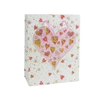 Dárková taška.Rozměry : 26 × 10 cm, výška 32 cm.Barva : kombinace bílá, růžová.Materiál : papír. prečítať celé