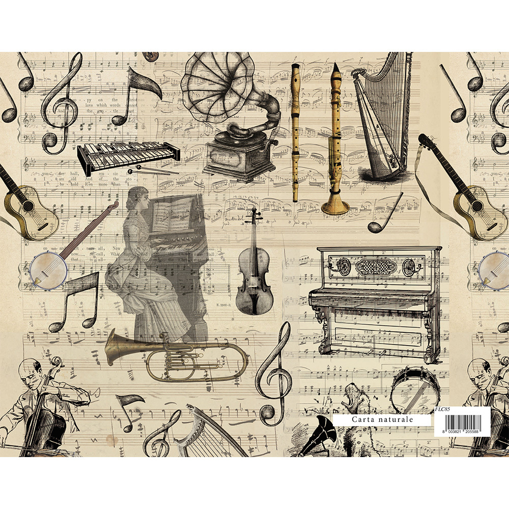 Dárkový balicí papír FLORENTIA 70x100 cm - noty a hudební nástroje