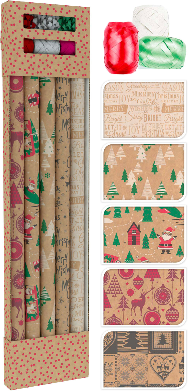 Sada Vánoční balící - 5x balící papír, 3x stuha, 3x maš