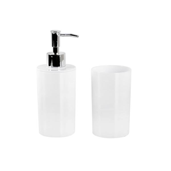 DÁVKOVAČ MÝDLA A KELÍMEK, BÍLÁ, PLAST