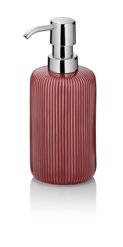 Barva pro vaši koupelnu: velký, krásný keramický dávkovač mýdla Ava o objemu 350 ml. Nápadná je malinová červená barva dávkovače mýdla. Výměnná hlava čerpadla je vyrobena z plastu, pochromovaná. Výška: 17,5 cm Keramika 7,5 cm, v. 19 cm prečítať celé