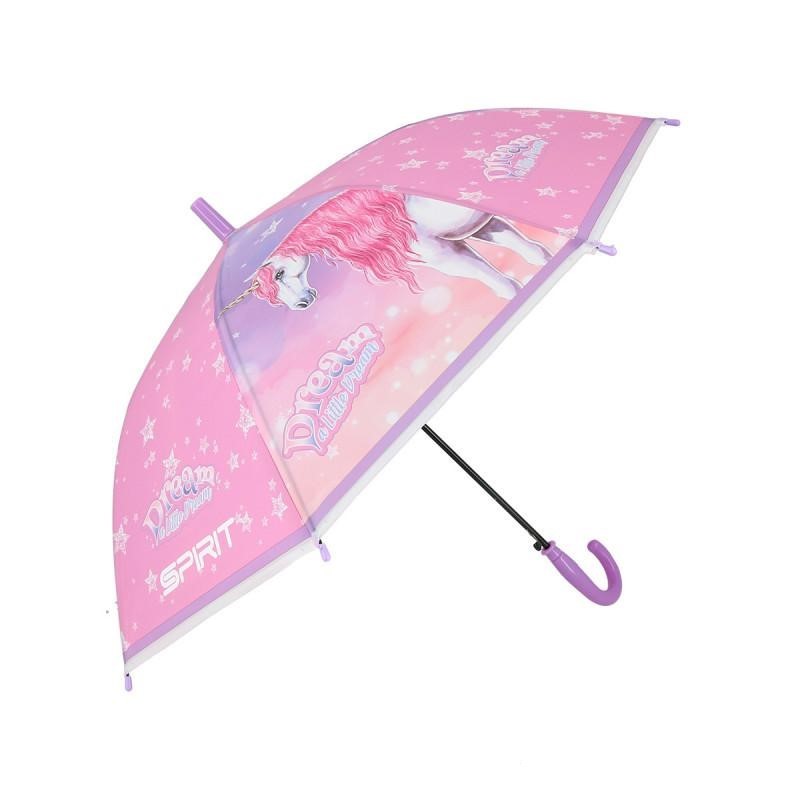 Deštník s automatickým otevíracím mechanismem pro děti.materiál POE s potiskemplastová rukojeť v barvě deštníku8x pevný sklolaminátový drátprůměr otevřeného deštníku je 77 cm prečítať celé