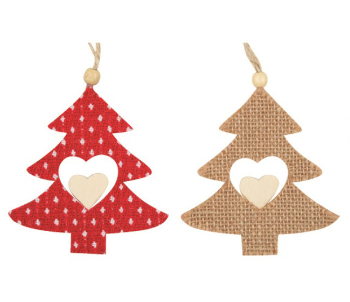 Dekorace vánoční k zavěšení jutová - stromek 10cm, 2ks