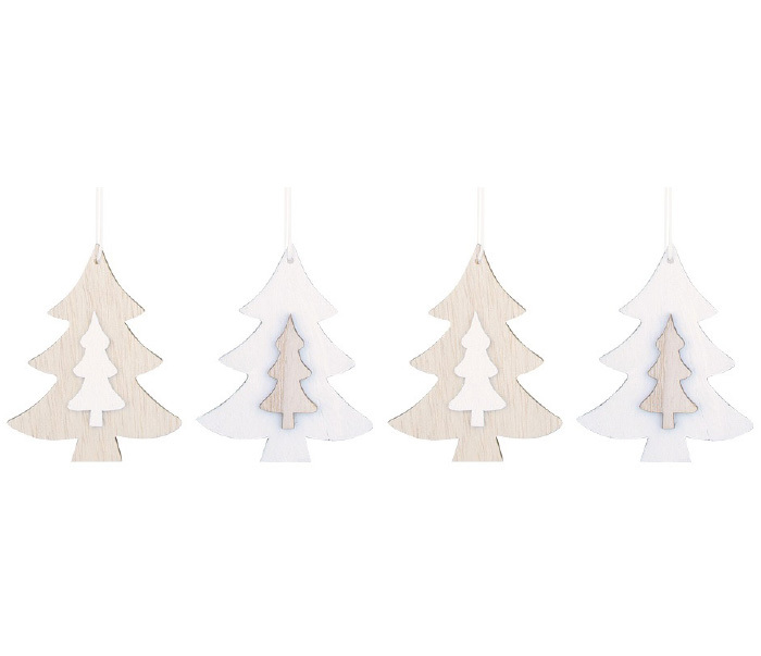 Dekorace vánoční k zavěšení dřevěná - stromek 7cm, 4ks