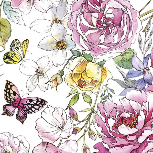 Ubrousky MAKI L (20ks) Watercolor with Roses and Butterflies