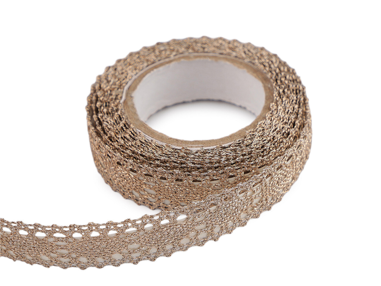 Samolepicí krajka s metalickým efektem působí luxusním dojmem, vašim výrobkům dodá lesk a slavnostní nádech. Práce s ní je velmi jednoduchá, stačí odstranit spodní krycí papír a samolepicí vrstva je připravená k lepení.Krajku využijete na ozdobení krabiček, dárků, přáníček, pozvánek, jmenovek,...