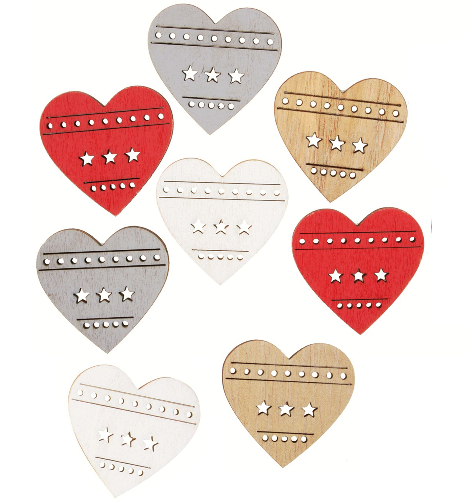 Dekorace vánoční dřevěná - Srdce 3,5cm 8ks