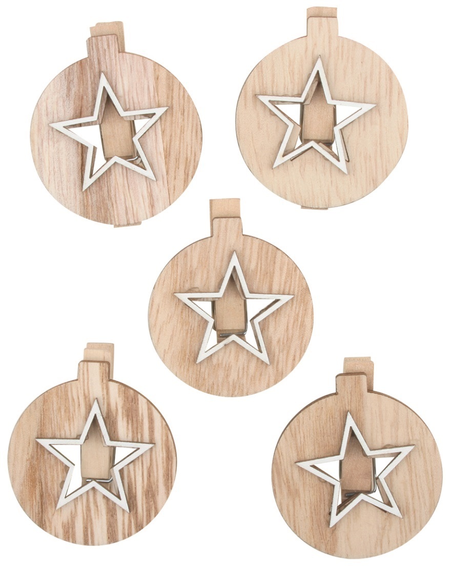 Dekorace vánoční kolíček - hvězda dřevěná 4,5cm, 5ks